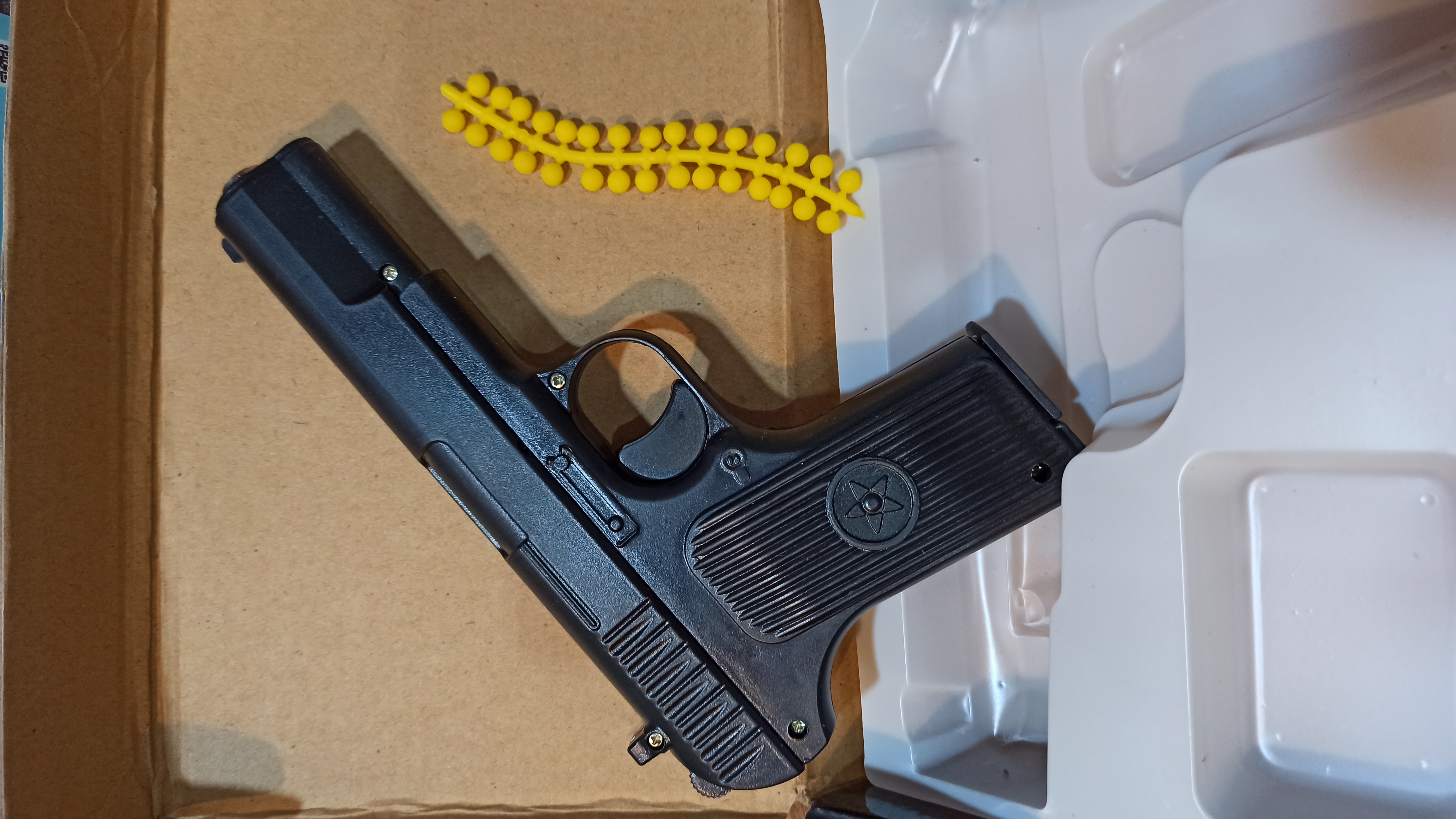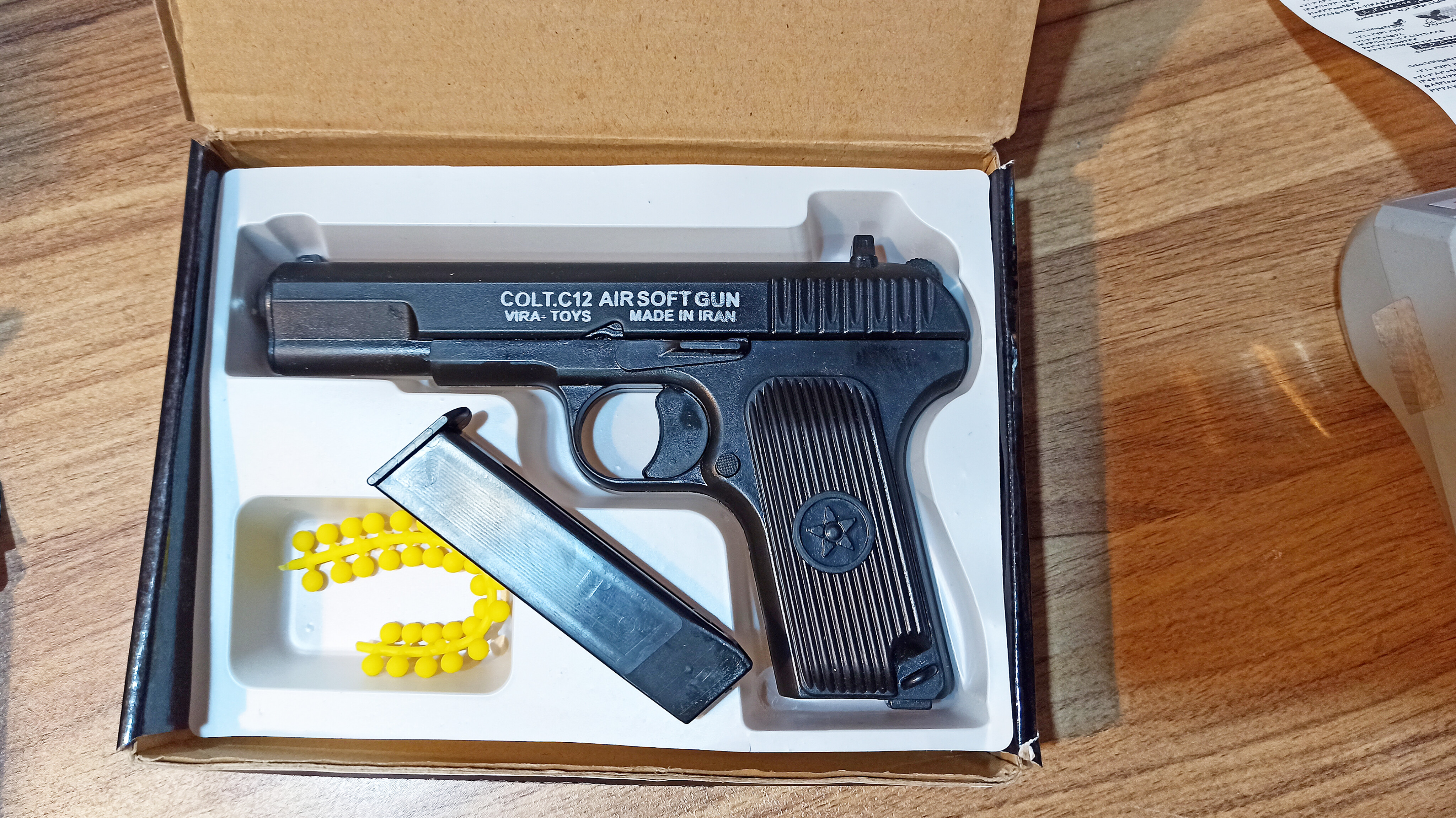 اسباب بازی کلت فلزی ( طرح فلز ) پرتاب ساچمه قوی دارای خشاب و ضامن خشاب وارداتی طول جعبه محصول : ۲۲ cm ارتفاع جعبه محصول : ۱۷ cm برند محصول : China ارسال رایگان ارسال سریع موجود در فروشگاه اسباب بازی سمکو