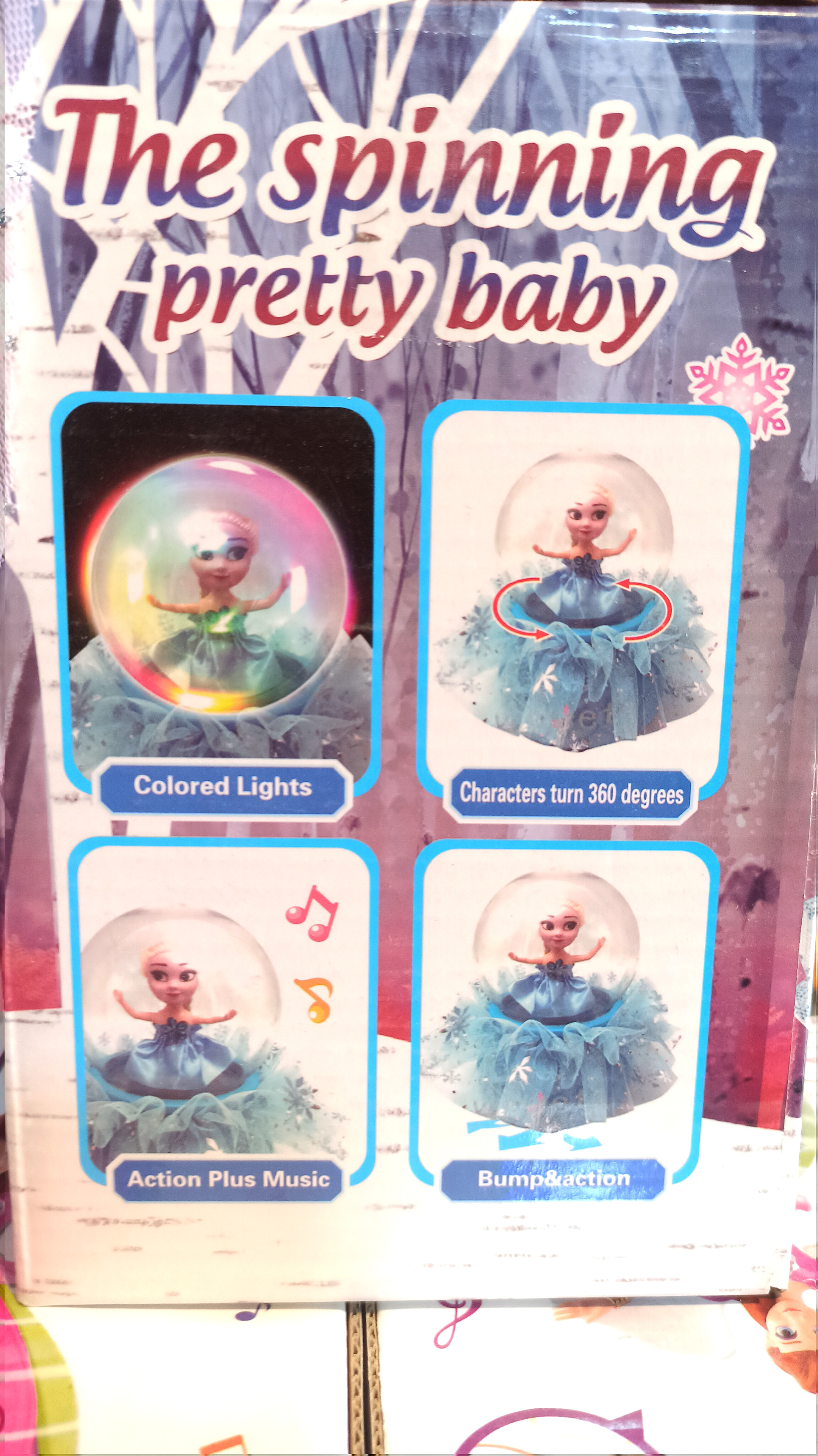 چرخ های زیر عروسک فروزن باعث میشود این گوی شیشه ای در تمامی جهات به حرکت در بیاد همزمان عروسک فروزن داخل گوی شیشه ای به دور خود می چرخد با موزیک های متفاوت و رقص نور