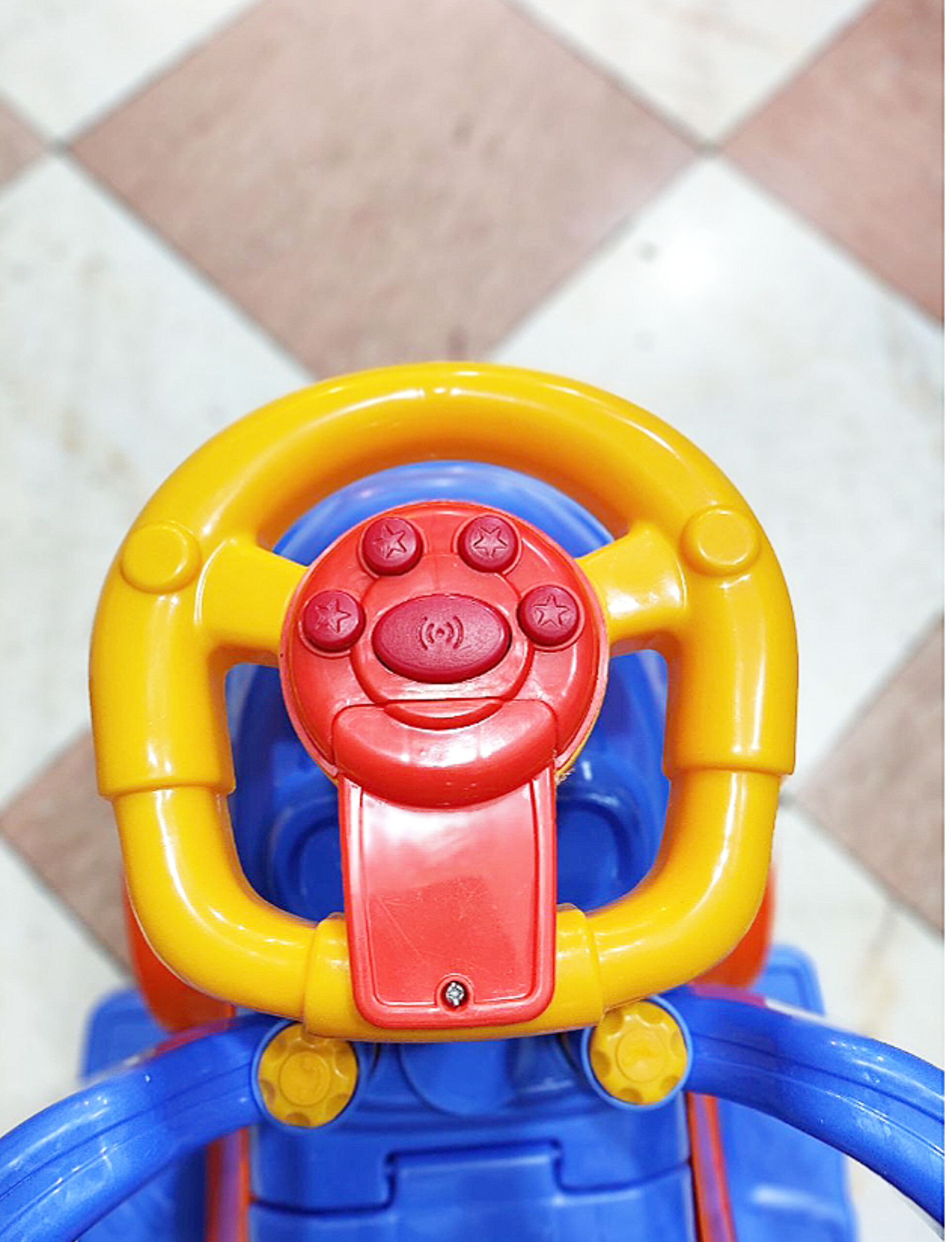 دارای یک صفحهی موزیکال روی فرمان با قابلیت پخش صدای بوق و چهار دکمه جهت پخش ملودی کودکانه