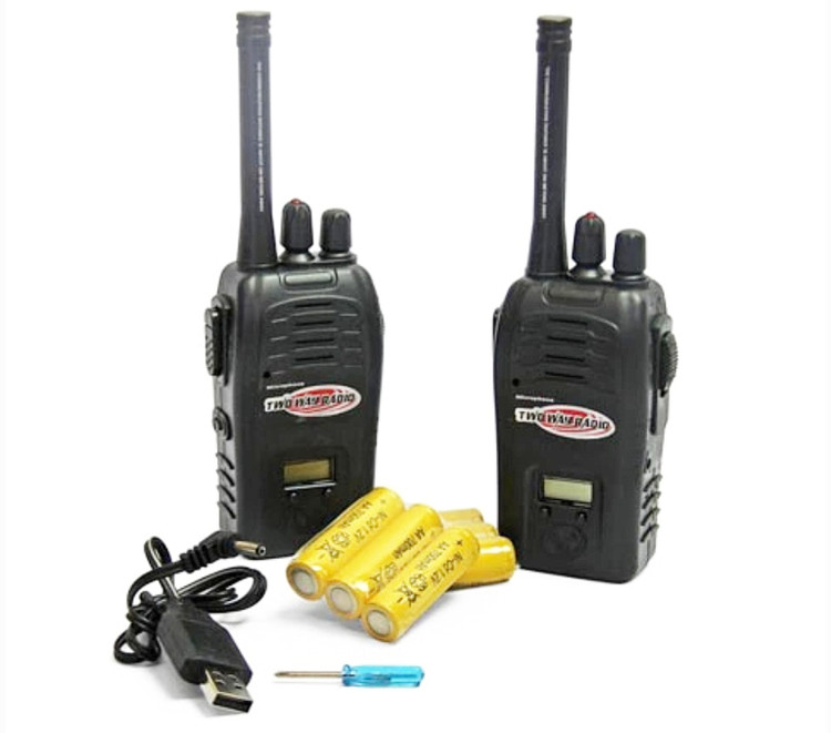 مشخصات بیسیم (واکی تاکی) شارژی ✅ابعاد ۲۲.۵ × ۴.۵ × ۱۷ سانتیمتر ✅قابلیت: برد بین ۲۰۰ تا ۳۰۰ متر ✅دارای صفحه نمایش ✅دارای سیستم نویز گیر ✅جنس: پلاستیک باکیفیت چراغدار ✅لوازم همراه : دو عدد بیسیم ،کابل شارژ ،۲ عدد پک باطری ✅دارای دکمه ی خاموش و روشن ✅دارای ساعت دیجیتالی بر روی بیسیم