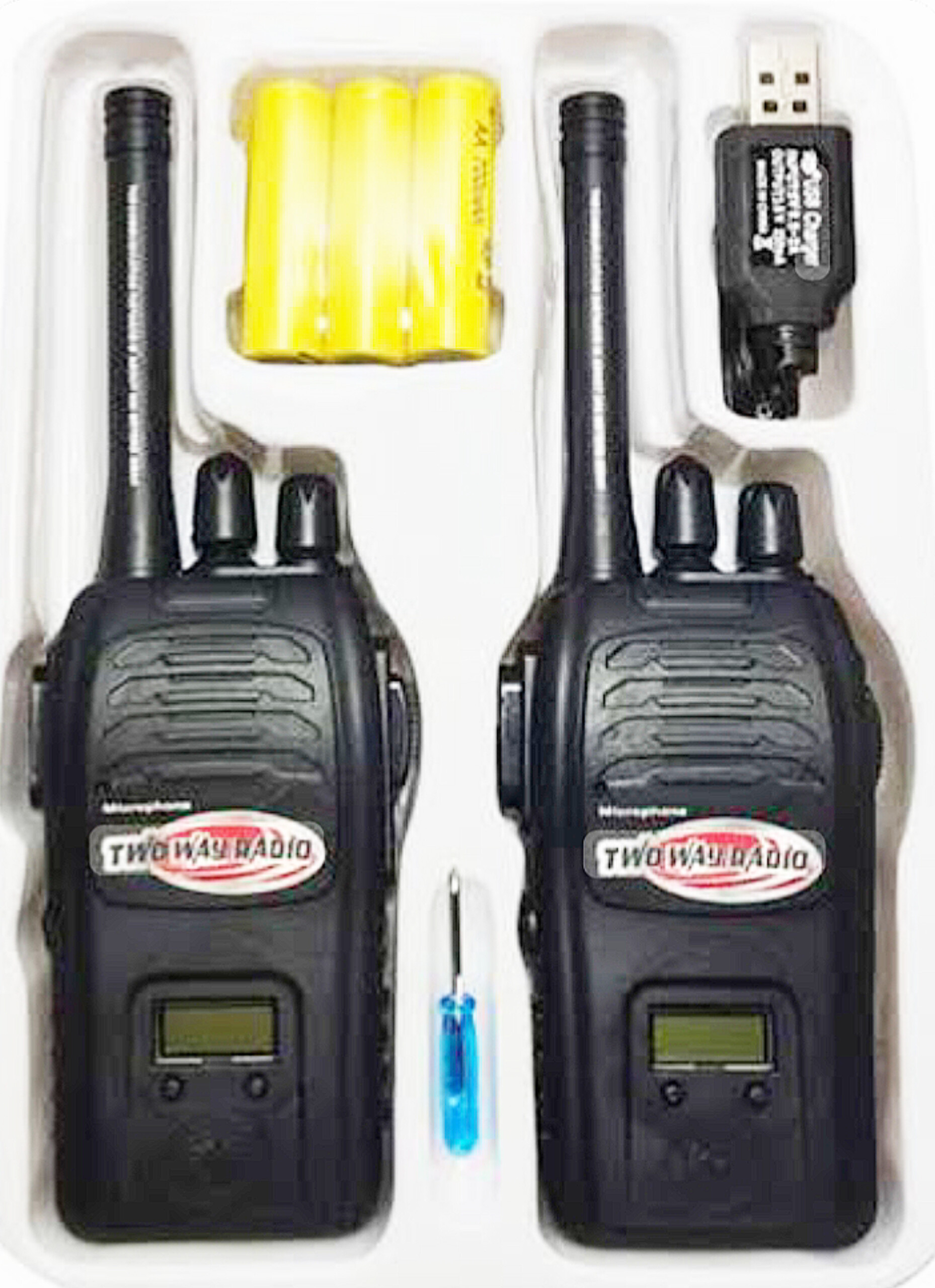مشخصات بیسیم (واکی تاکی) شارژی ✅ابعاد ۲۲.۵ × ۴.۵ × ۱۷ سانتیمتر ✅قابلیت: برد بین ۲۰۰ تا ۳۰۰ متر ✅دارای صفحه نمایش ✅دارای سیستم نویز گیر ✅جنس: پلاستیک باکیفیت چراغدار ✅لوازم همراه : دو عدد بیسیم ،کابل شارژ ،۲ عدد پک باطری ✅دارای دکمه ی خاموش و روشن ✅دارای ساعت دیجیتالی بر روی بیسیم