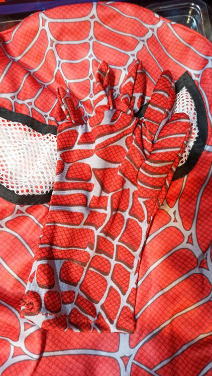 به همراه نقاب جنس پارچهای با چشم های توری و دستکش مرد عنکبوتی