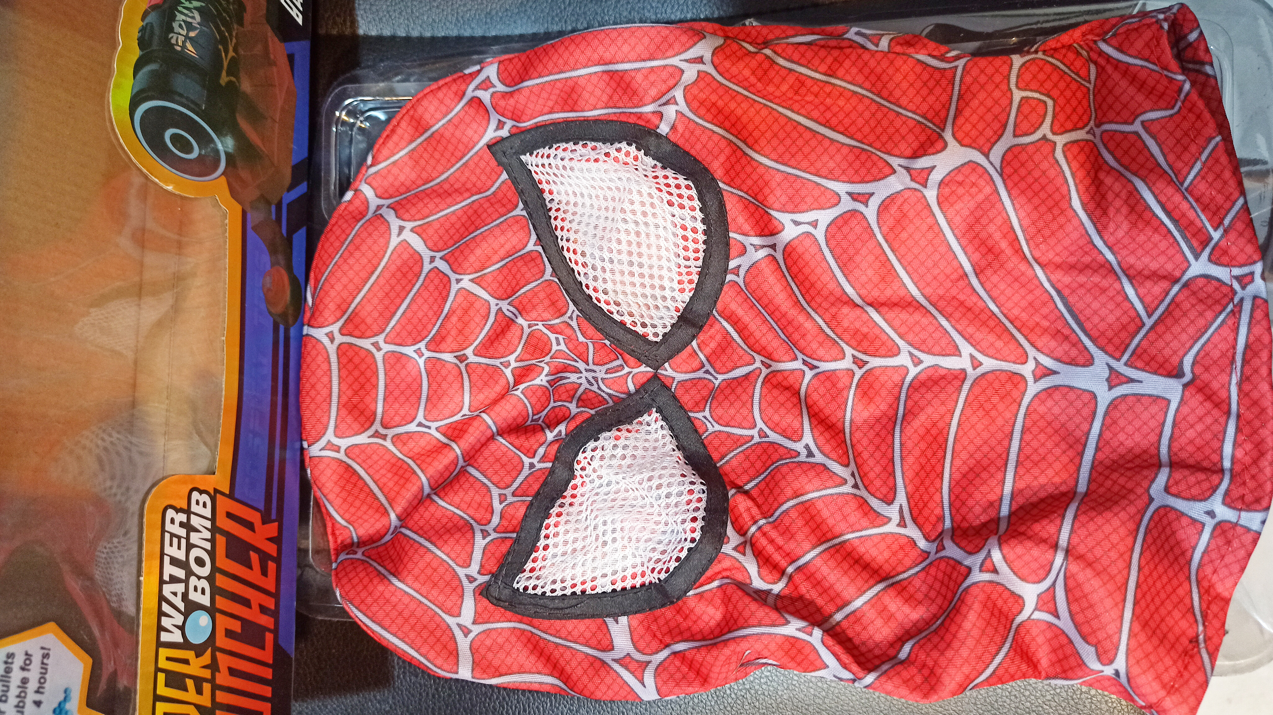 به همراه نقاب جنس پارچهای با چشم های توری و دستکش مرد عنکبوتی