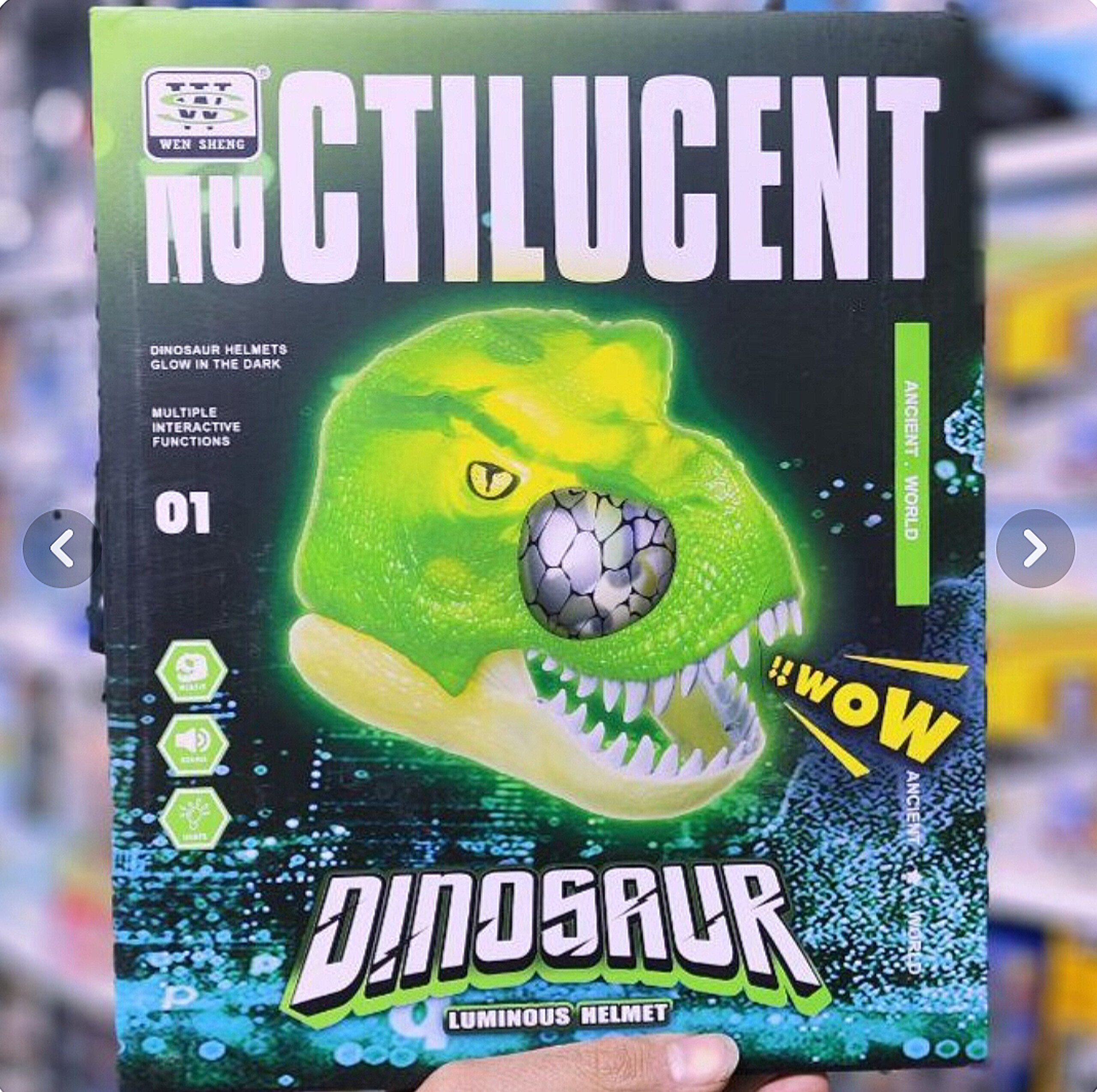 بابازوبسته کردن دهان همزمان دهان ماسک باز و بسته شده چراغ های چشم های ماسک روشن و خاموش شده و صدای دایاناسور پخش میشود