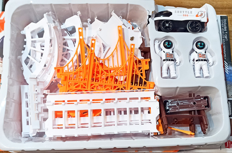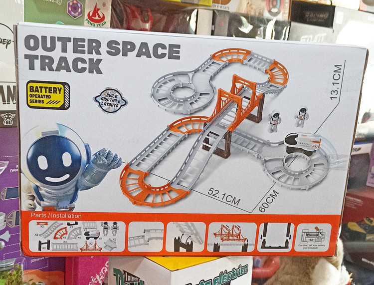 حرکت ماشین فضایی باطری خور باطری قلمی که برروی ترن و ریسینگ درحال حرکت هست