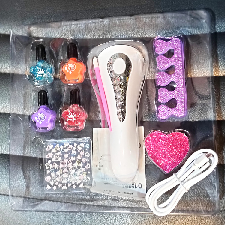 دارای دستگاه برای خشک کردن طرح برروی ناخون با نور ال ای دی و فن دستگاه